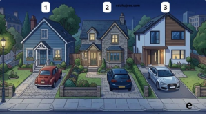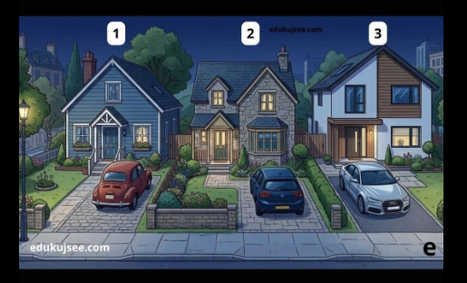 Dobrodošli u još jedan intrigantan zadatak koji će testirati vašu moć zapažanja i logičkog razmišljanja. Pred vama se nalazi ilustracija koja na prvi pogled izgleda potpuno bezazleno – mirna, gotovo uspavana prigradska ulica u kasnim noćnim satima. Sve djeluje skladno i opuštajuće: tri elegantne kuće stoje poredane jedna do druge, svaka sa svojim jedinstvenim stilom i šarmom.