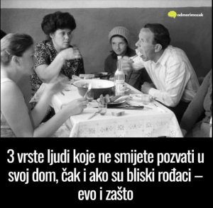 Treća vrsta ljudi su oni koji ne razumiju ili ignoriraju tuđe granice. Takve osobe često smatraju da imaju pravo na sve u vašem domu samo zato što su rodbina ili dugogodišnji prijatelji.