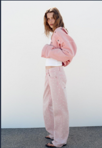 Ni Mango ne zaostaje. Njihove verzije traperica s točkicama često kombiniraju više trendova u jednom komadu. Tako se mogu pronaći modeli koji spajaju točkasti uzorak s balloon krojem i modernim nijansama poput smeđe, koja već dominira proljetnim kolekcijama. Takav pristup dodatno naglašava koliko je ovaj trend fleksibilan i otvoren za različite modne interpretacije.