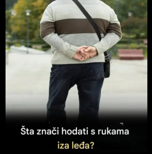 Hodanje sa rukama sklopljenim iza leđa najčešće se povezuje sa staloženošću, sigurnošću u sebe i emocionalnom stabilnošću. Ovaj položaj prirodno ispravlja leđa, otvara grudni koš i opušta ramena, zbog čega osoba djeluje sabrano i prisutno.